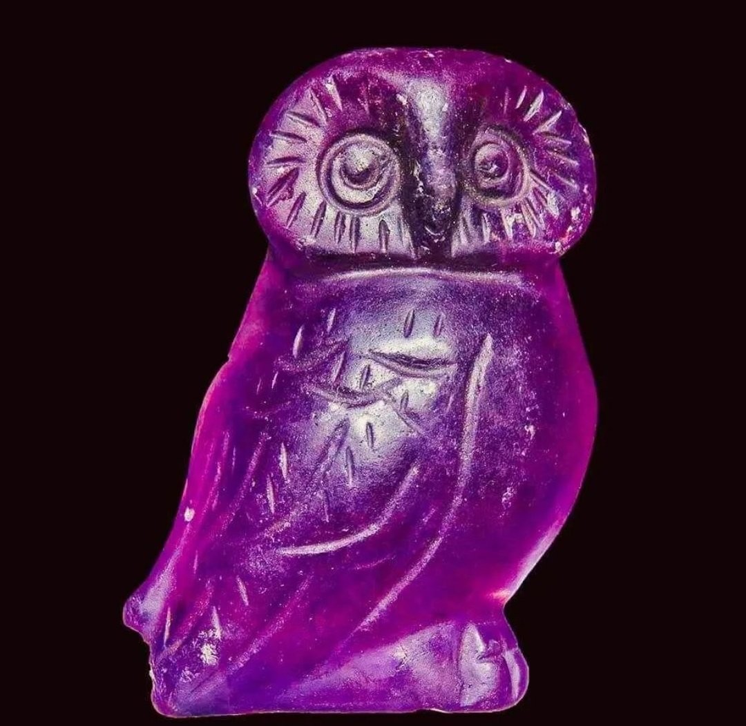 Owl - eastern Greek fluorite carved idol, 4th-3rd Century BC. (H: 48mm)