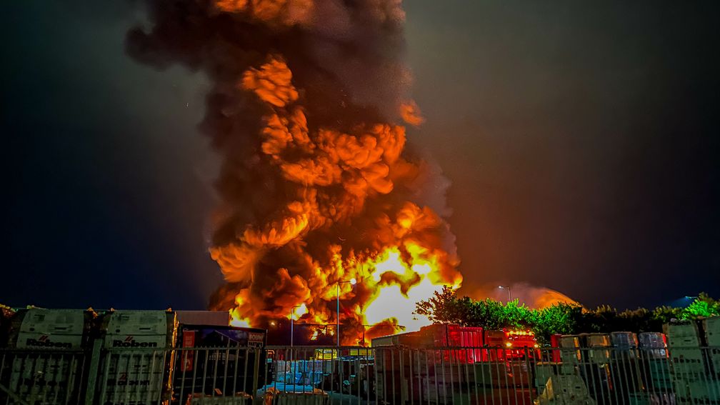 De brand in het bedrijf op de Antennestraat brak rond 02.36 uur uit. De brandweer laat het pand waarin de brand woedt gecontroleerd uitbranden en probeert te voorkome [..] - https://nos.nl/l/2572527