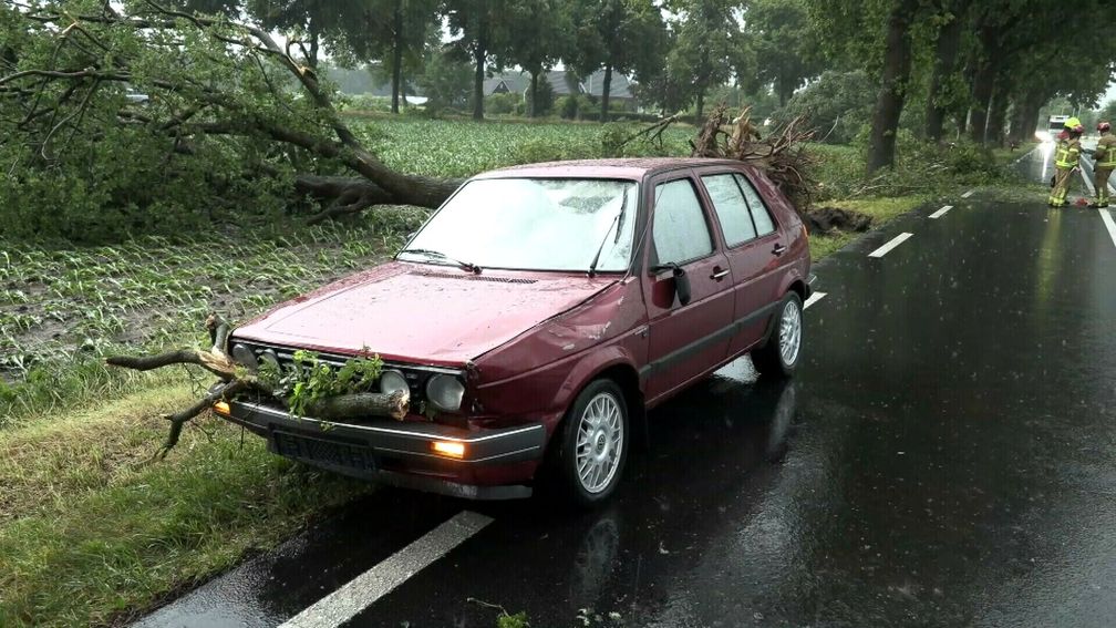 Na twee dagen van zinderende hitte trok vanavond noodweer over het oosten van Nederland. Daarbij werd vooral Winterswijk getroffen. Bij de brandweer kwamen zeker 127 meldingen binnen over schade en één brand.