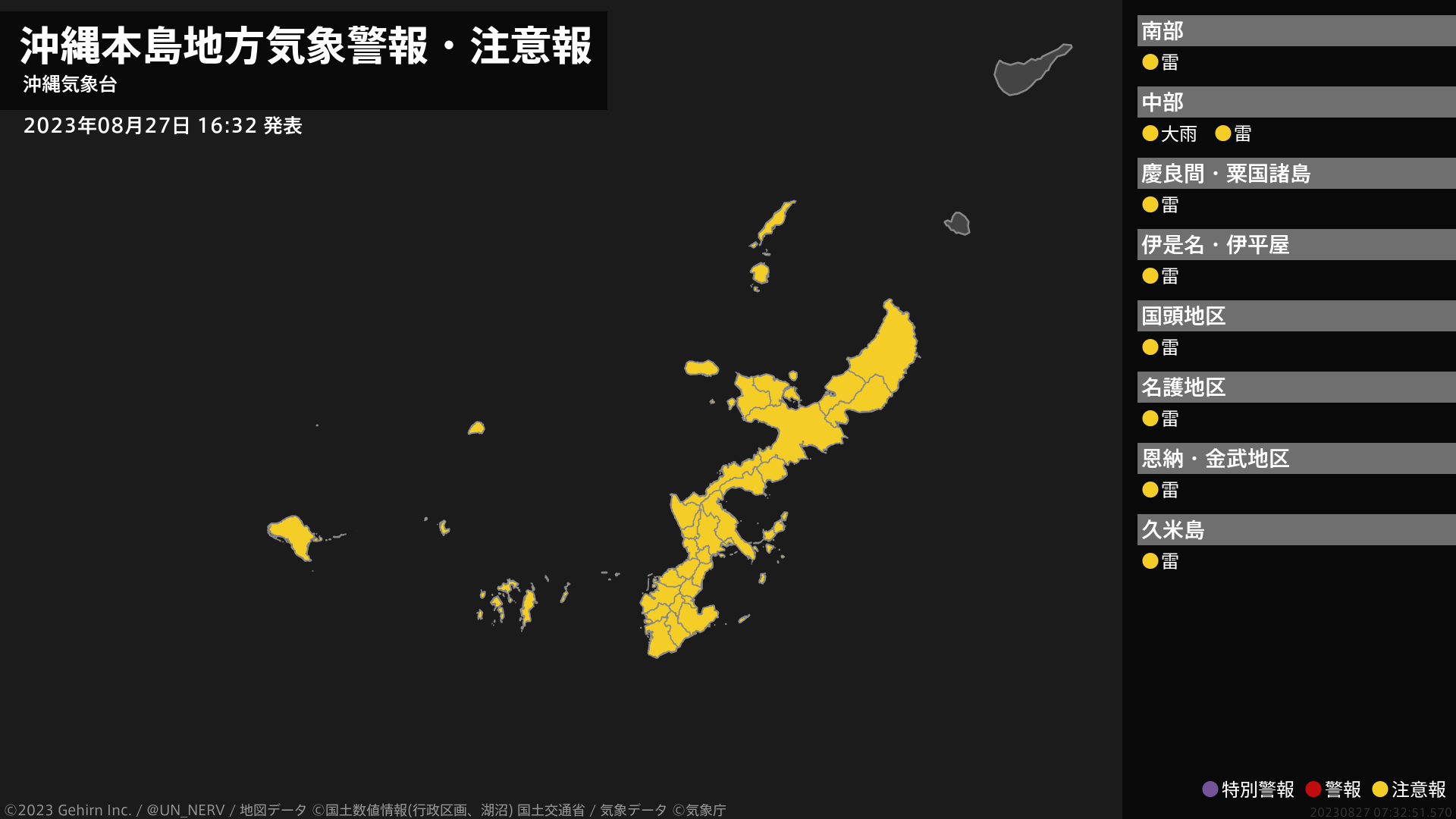 【沖縄本島地方 気象警報・注意報 2023年08月27日 16:32】