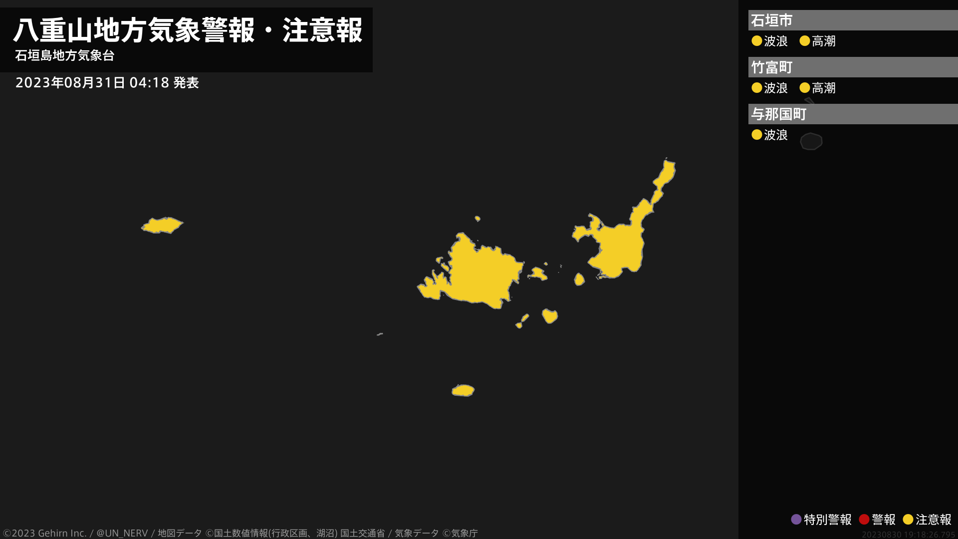 【八重山地方 気象警報・注意報 2023年08月31日 04:18】