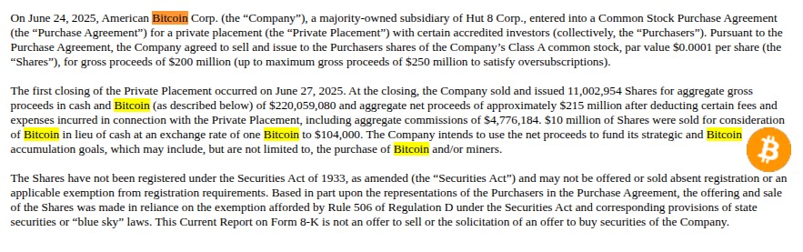 Eric Trump’s American Bitcoin Corp just raised $215M, some of it paid in BTC, to buy more #Bitcoin and build out mining.