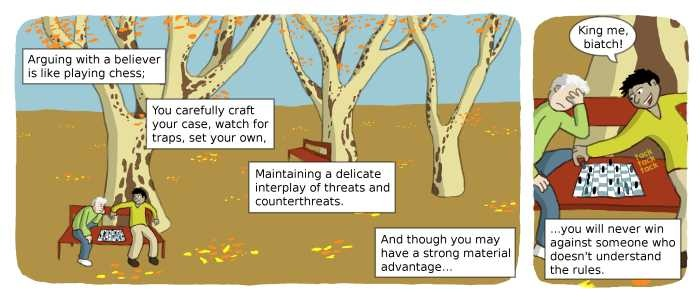 How can we when your entire premise is entirely and 100% ideological? It is âbelief without thinking.â In order to even start down your path, I have to accept axioms that are not true, and have never been true, until 15 minutes ago.