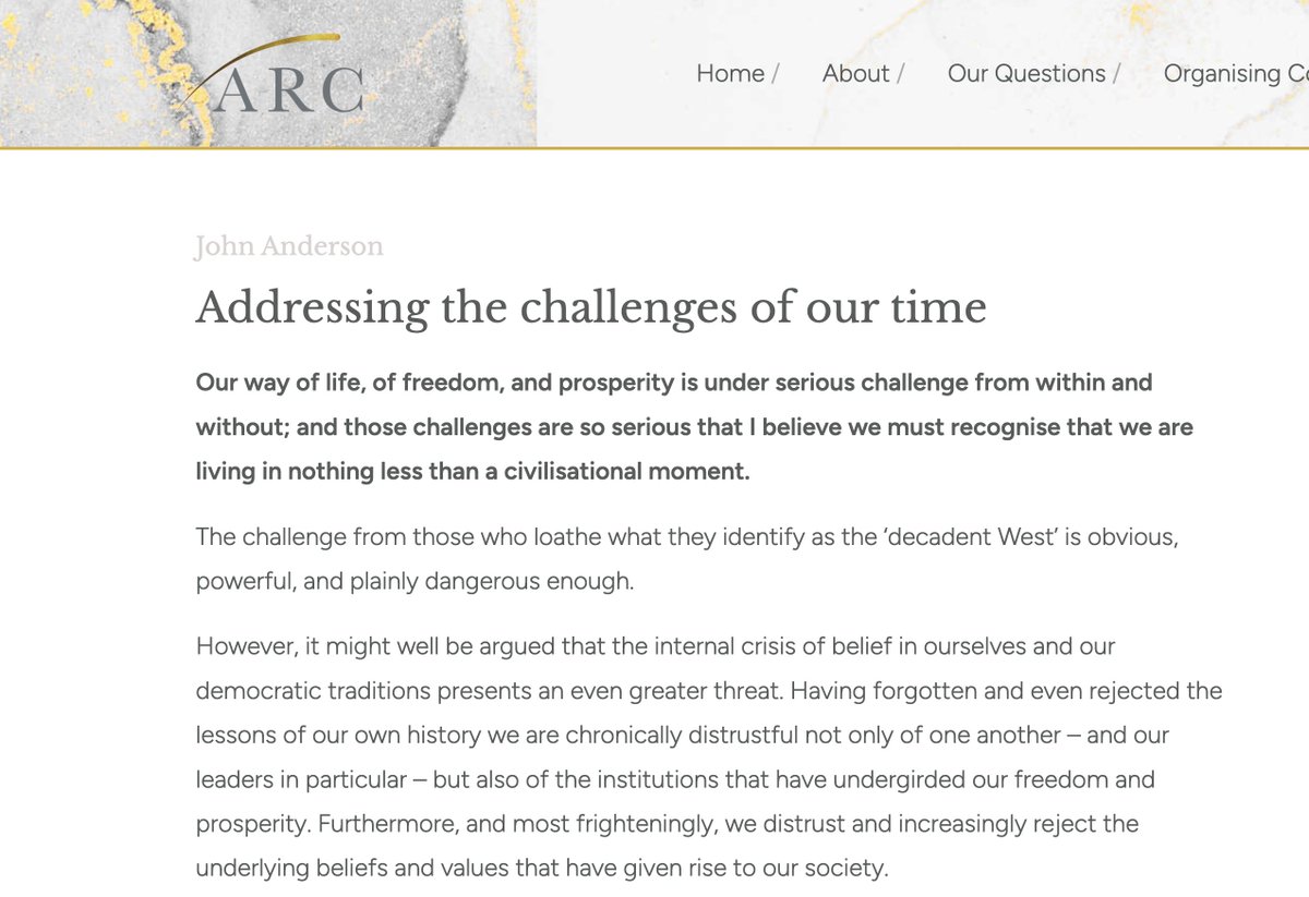 A statement of support for the new Alliance for Responsible Citizenship: an invitation to the future from John Anderson, former Deputy Prime Minister of Australia @JohnAndersonAC: https://www.arcforum.com/ideas/addressing-the-challenges-of-our-time/