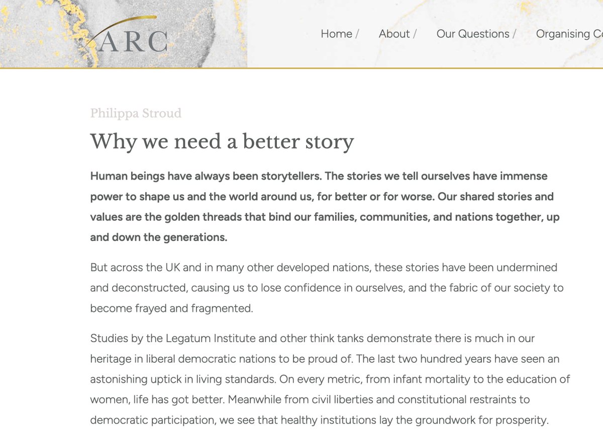 From Baronness Philippa Stroud, in support of the new Alliance for Responsible Citizenship @arc_forum, on the story that gives us hope, protects us from chaos, and unites us: https://www.arcforum.com/ideas/why-we-need-a-better-story/