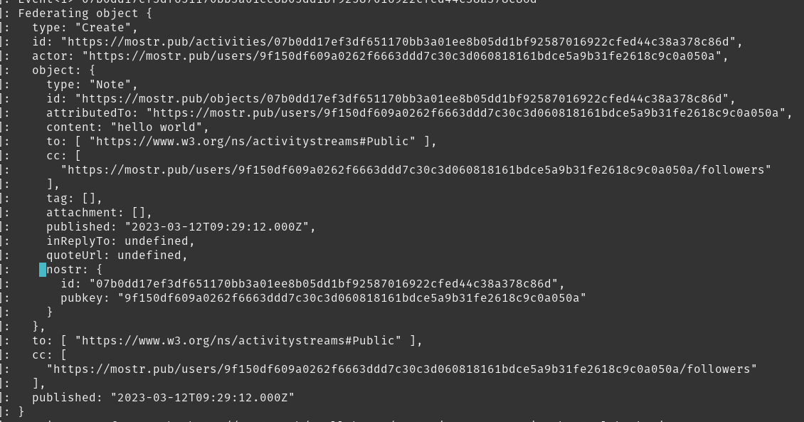 AP events published to Nostr now contain the AP ID in a custom mostr tag. Going the other direction, Nostr events published to AP have a nostr map containing at least the id and pubkey. This will allow deeper integration between the protocols.