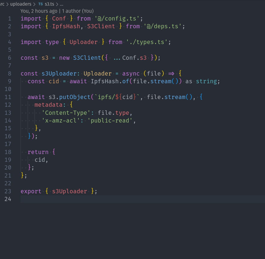 Ditto IPFS uploader and S3 uploader. I caved and decided to support both. The IPFS uploader uploads to a locally installed IPFS instance. The S3 uploader uploads to S3, DigitalOcean, etc. But even the S3 option has partial support for IPFS. In both cases media IDs are IPFS CIDs, and the media is made available at `/ipfs/