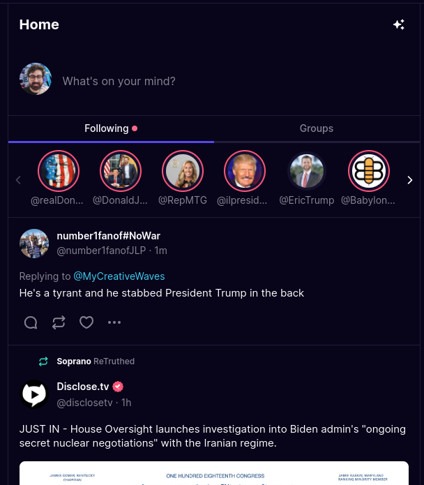Truth Social added Bluesky-like custom feeds. Except they're hardcoded and there's only two options.