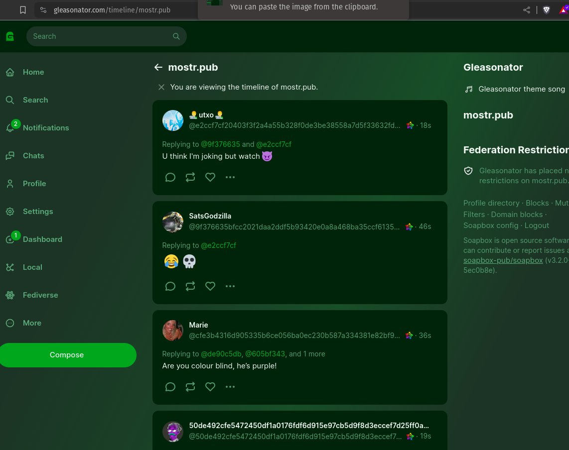 nostr:npub108pv4cg5ag52nq082kd5leu9ffrn2gdg6g4xdwatn73y36uzplmq9uyev6 nostr reboost not work proper to fedi :(