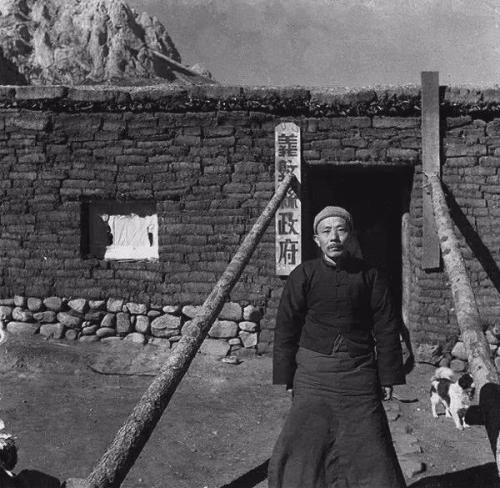 1939年,西康省义敦县县长彭勋在县政府门前。(孙明经/摄。)