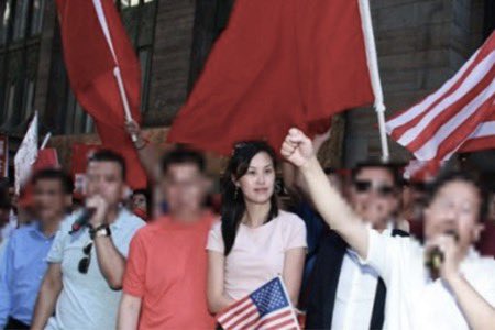 圖3:2019年7月,蔡英文過境紐約期間,孫琳參加了親中共海外華人團體組織的集體抗議活動,其中包括中共特务梁冠軍等人。 (大紀元資料圖)