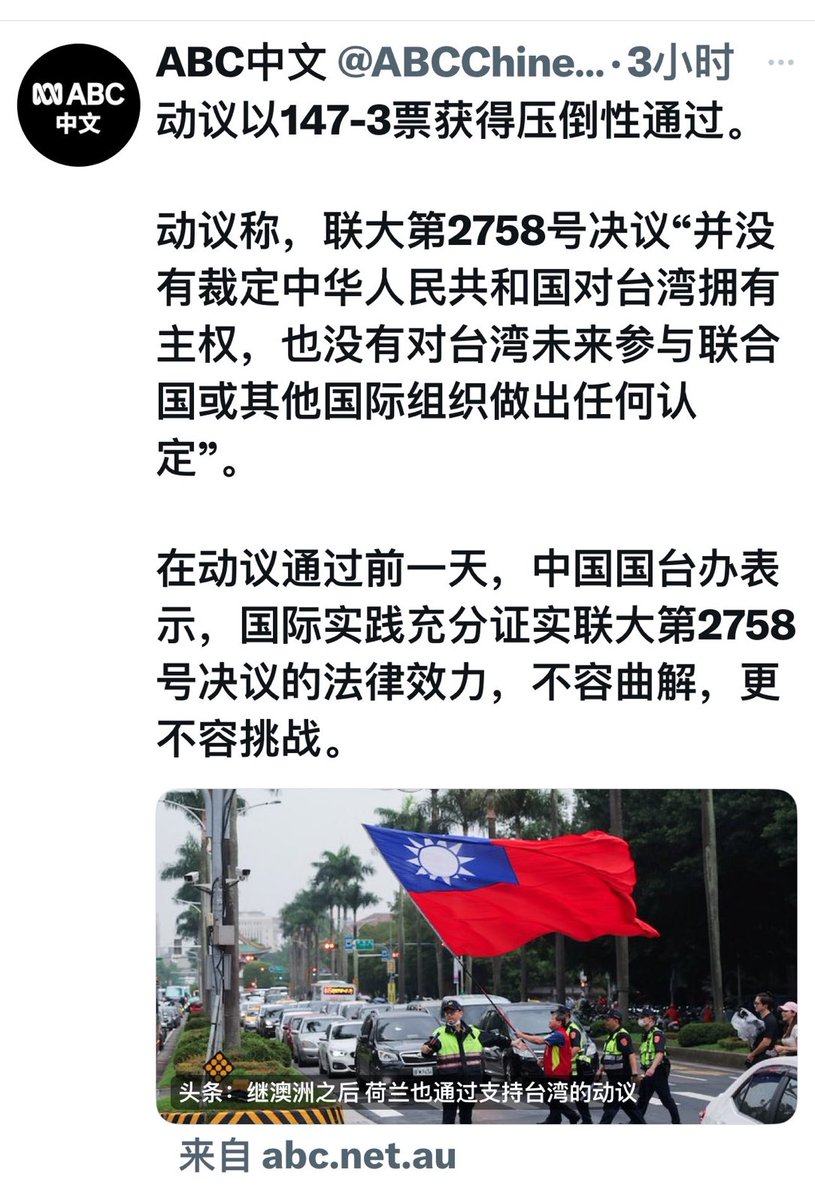 🔥 澳洲又通过了一项具有国际重大意义的涉台湾动议案,这项动议案将有着西方未来到底是亲台湾还是亲中共风向标的意义!