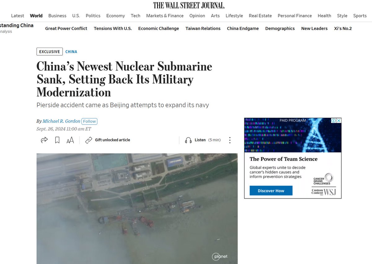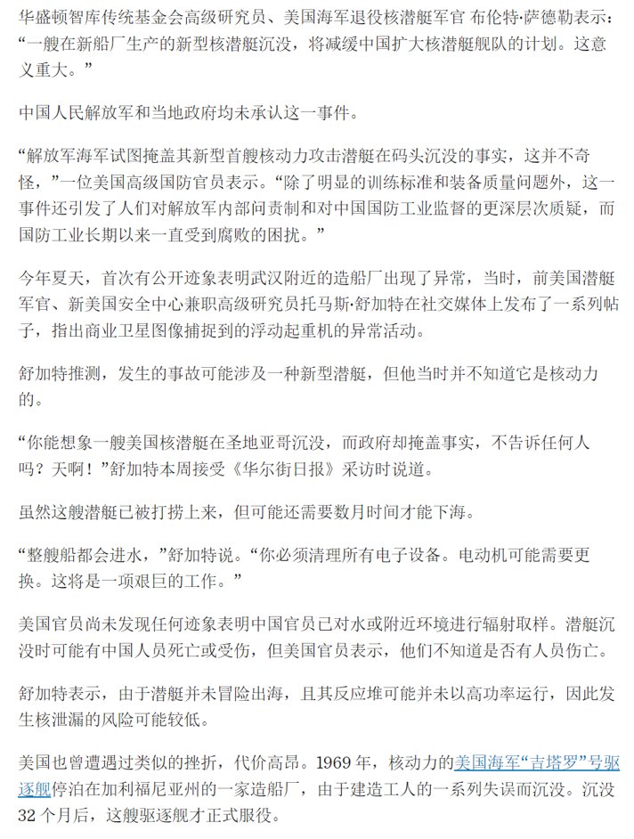 👉 转:《华尔街日报》9月26号报道,美国官员称,中国一艘最新的核动力攻击潜艇于今年五月末或六月初沉没,这一事件据报发生在武汉附近的一家造船厂,中国当局极力掩盖,此前从未披露过! https://t.co/ulQwwA9TEJ