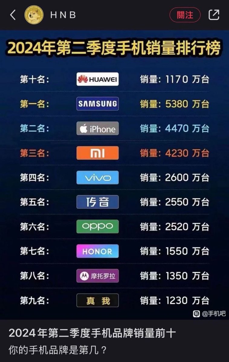📣 第一次见到这样排名的,华为 (坏为) 溴大了!🤣 https://t.co/ahISFsDLht