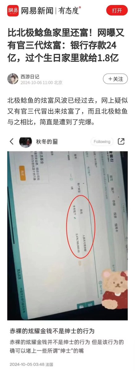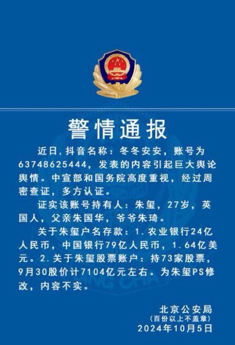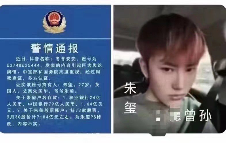 红四代炫富晒出逾24亿人民币的账户余额,并吹嘘是奶奶给的1.8亿的生日礼物。不过根据北京市公安局的通报,此人叫朱玺(英国人)27岁,父亲朱国华,爷爷朱琦。