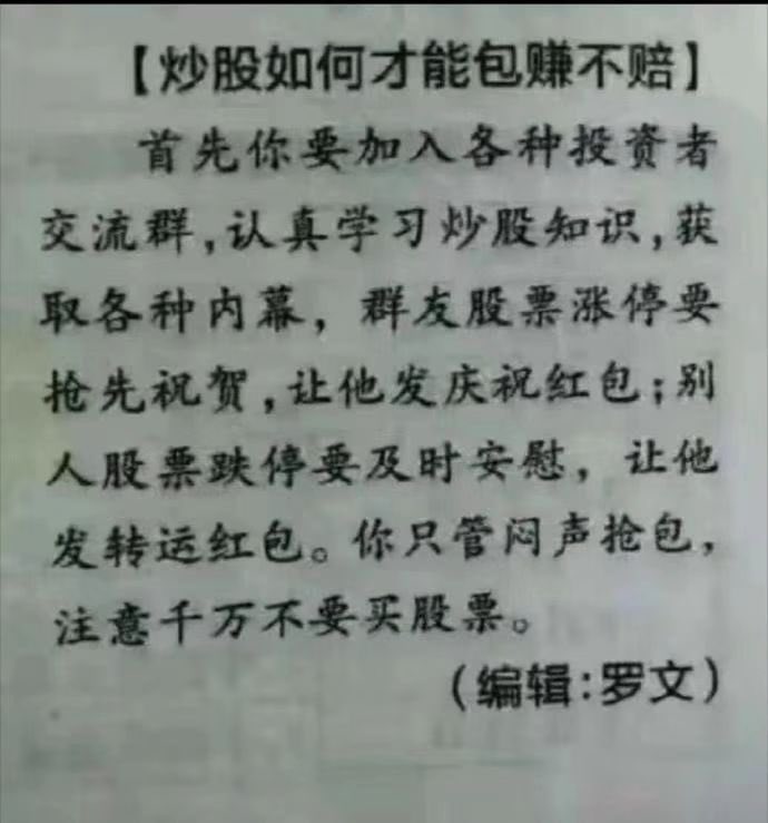🔥 梗图:炒股怎样才能包赚不赔?第二张图也太损了…… https://t.co/tNdhK0nsEV