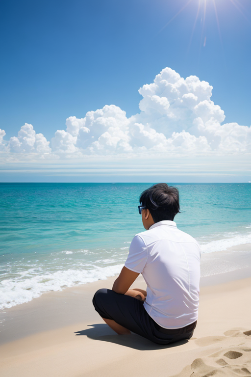 nostr:npub102ca8pnhy26vh2akepgr4vleyew65nuzug5val3sycslfe0wruwqzezyfp imagine Satoshi Nakamoto in a beach looking at the horizon