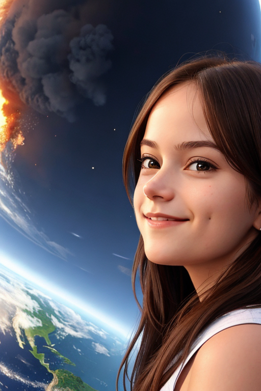 nostr:npub102ca8pnhy26vh2akepgr4vleyew65nuzug5val3sycslfe0wruwqzezyfp imagine mj Greta Thunberg smiling caricature looking at camera close up, planet earth in the background with smoke and some flames, cartoon, street art