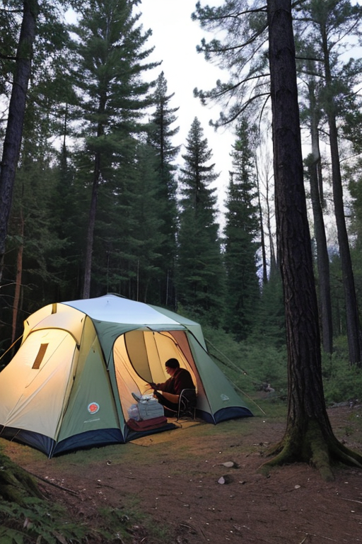 nostr:npub102ca8pnhy26vh2akepgr4vleyew65nuzug5val3sycslfe0wruwqzezyfp imagine drawing a man camping in the woods, while the grid is down, utilizing a ham radio setup for emergency communications.