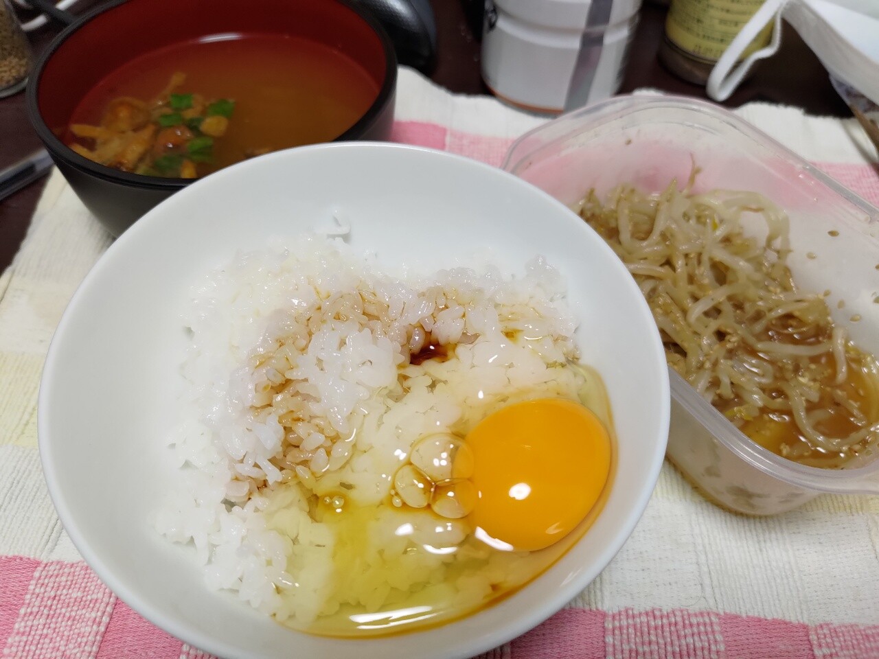 炊飯器買ったしとご飯タッパと茶碗と生卵を買ってきた