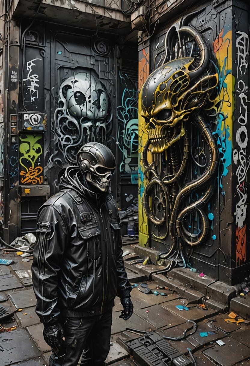 "Biomechanic Street Art and the artist" - made with #NightCafeStudio
