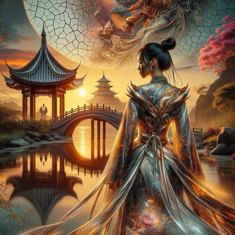 "Transparent Silhouette Splash Art – Asian Woman with Landscape – 1:1 Format – 08" - made with #NightCafeStudio