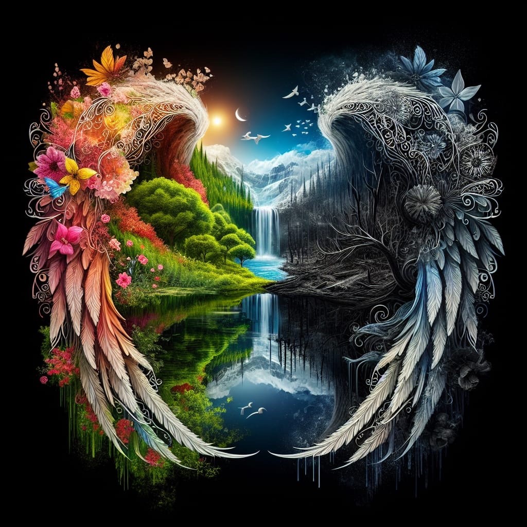 "the silhouette of angel wings against a black background" - made with #NightCafeStudio