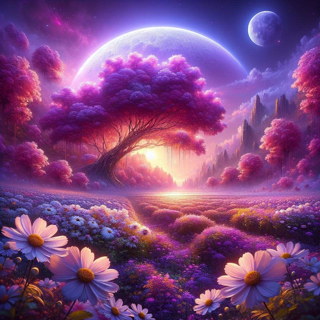 "Summer purple moonflower breezes. Stunning details throughout." - made with #NightCafeStudio