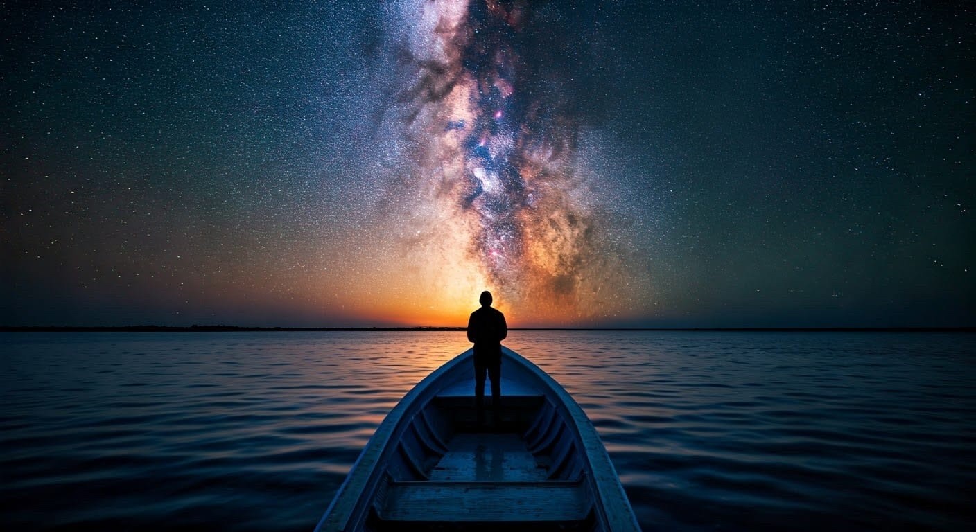"Fisherman staring out into night sky" - made with #NightCafeStudio
