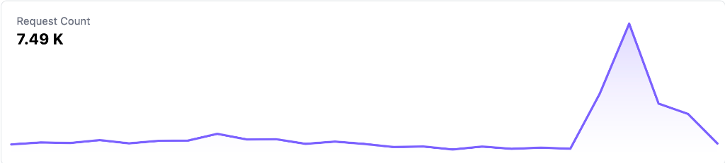 The last 24h of https://blowater.deno.dev 's traffic. The peak is when nostr:nprofile1qqsph3c2q9yt8uckmgelu0yf7glruudvfluesqn7cuftjpwdynm2gygprpmhxue69uhhyetvv9ujuumwdae8gtnnda3kjctv4v2h0g replied to one of my note. This is a new record.