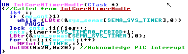 IRQ_SRC is the system timer (0x02, translated to IOAPIC redirection register offset), IRQ_DST is a random global interrupt (0x3f, but every entry I tried works as expected). In theory, I can change the IRQ ACK from PIC port I/O to APIC EOI register write, and hook the IRQ_TIMER routine to 0x3f or whichever I choose, mask IRQ0 (0x20 in the global interrupt table), and it will just work.