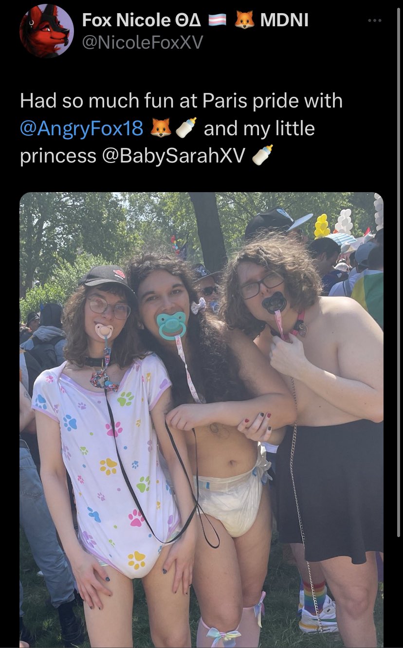 "So pride is for men who identify as baby girls, get pushed in strollers, and shit themselves."