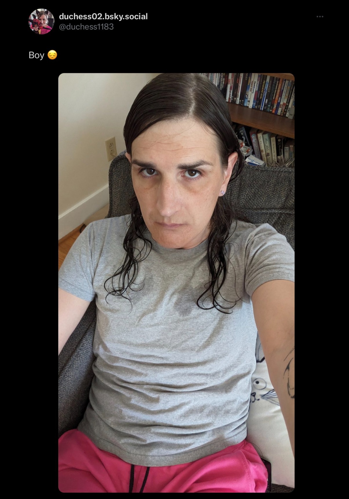 "transwomen are like "i'm a radical feminist and we need to abolish the male sex" and look like this... bitch, you are the male sex..."