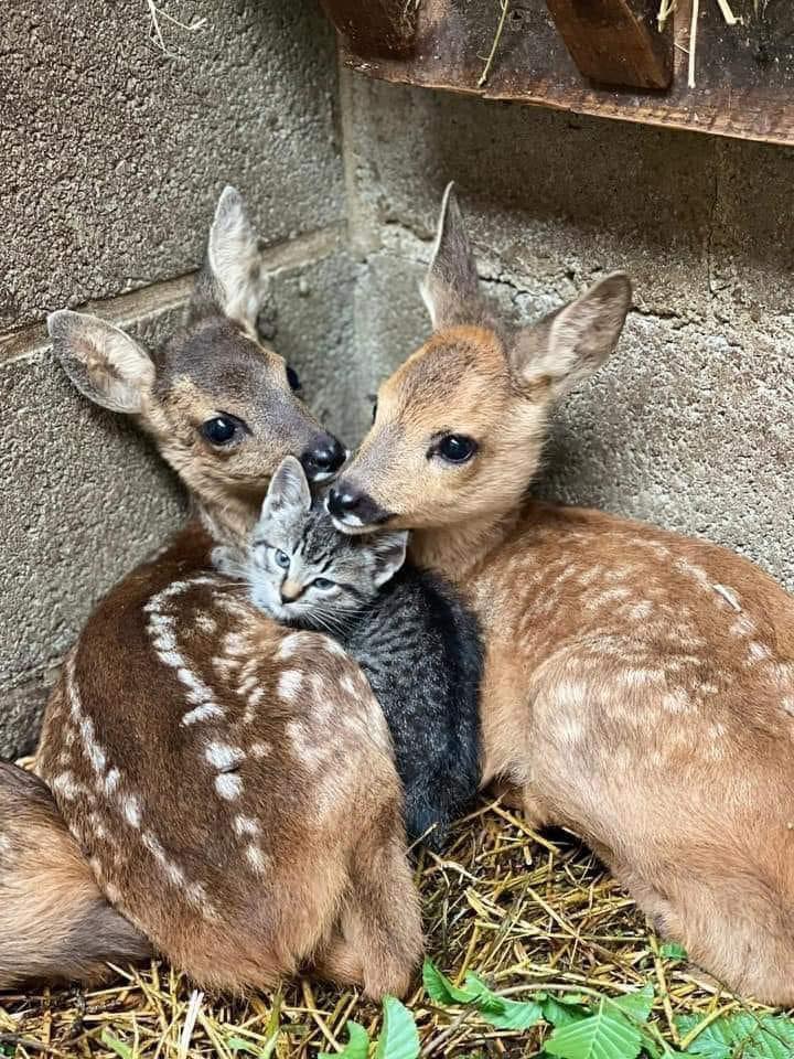 Kitten and fawns