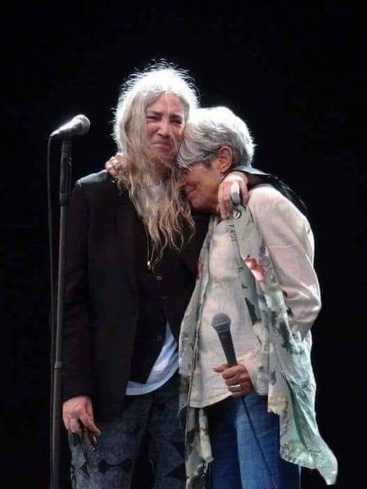 Two gray haired old dinosaurs - Joan Baez, 77 years old and Patti Smith, 72, a few days ago in Germany - the excitement of the reunion of a brilliant generation who dreamed and arrives old without seeing their dreams fulfilled.