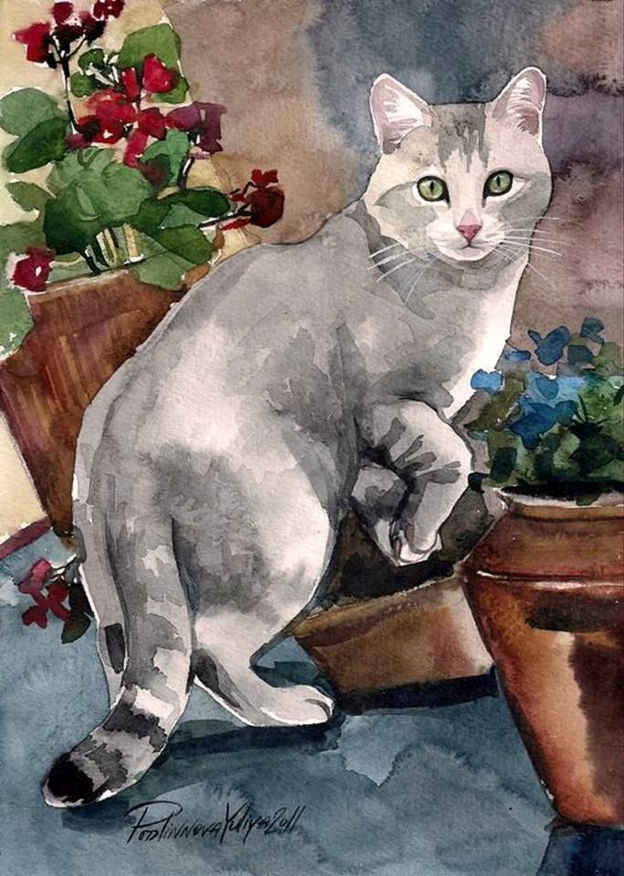 Yuliya Podlinnova is a watercolor artist living and working in Ufa, Bashkortostan in the Russian Federation. Yuliya Podlinnova is a сontemporary Russian artist and illustrator who paints mostly cats and occasionally landscapes.