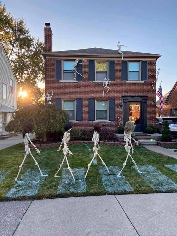 People going all out for Halloween - Beatles Abbey Road album tribute