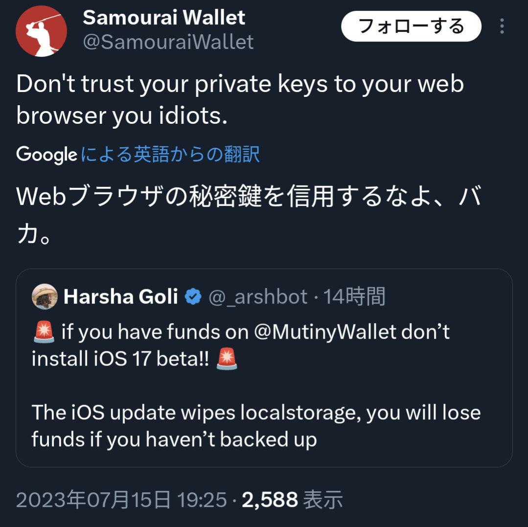 Mutinyの信頼性は今のところよくわからん。まだベータ版だし。