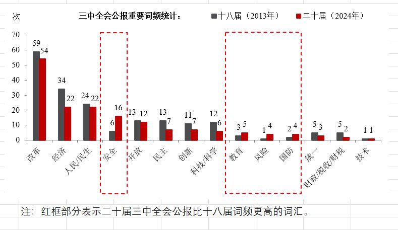 今天公布的三中全会公报,总体是对十九大以来强调的高质量发展框架的重新包装,大多数改革议题过往都出现在党和政府的各种文件中,看不出变化,内资和外资机构基本都是总结高频关键词变化试图梳理出部分细节。