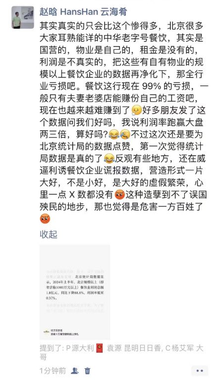 从业者看北京统计局数据:上半年北京规模以上(年营收1000万以上)餐饮企业,利润同比下降88.8%。 https://t.co/tEPp5m1ohM