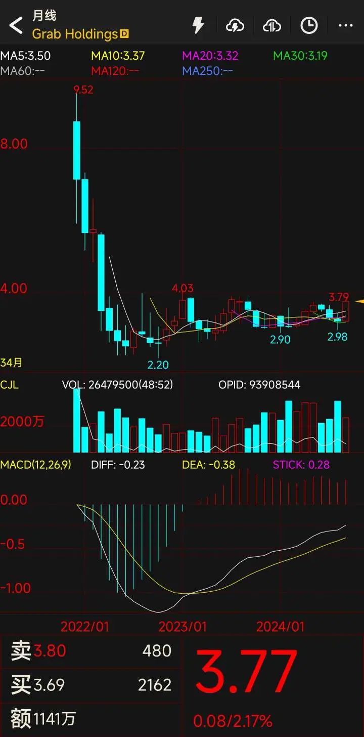 发现grab的股票真香啊,在曼谷使用量仅次于google map的墙外app,没想到这个东南亚美团股价还没爆发,竟然有点想开个美股账户了。