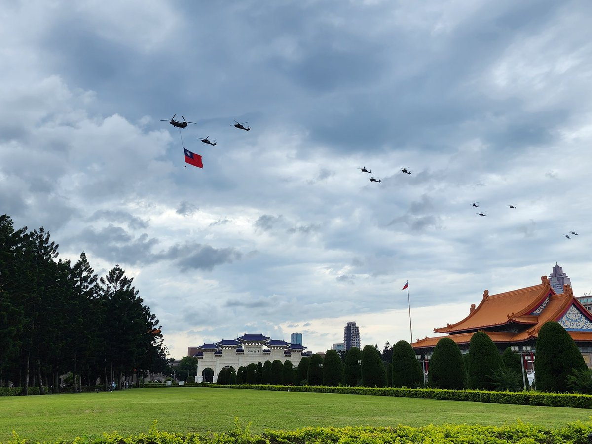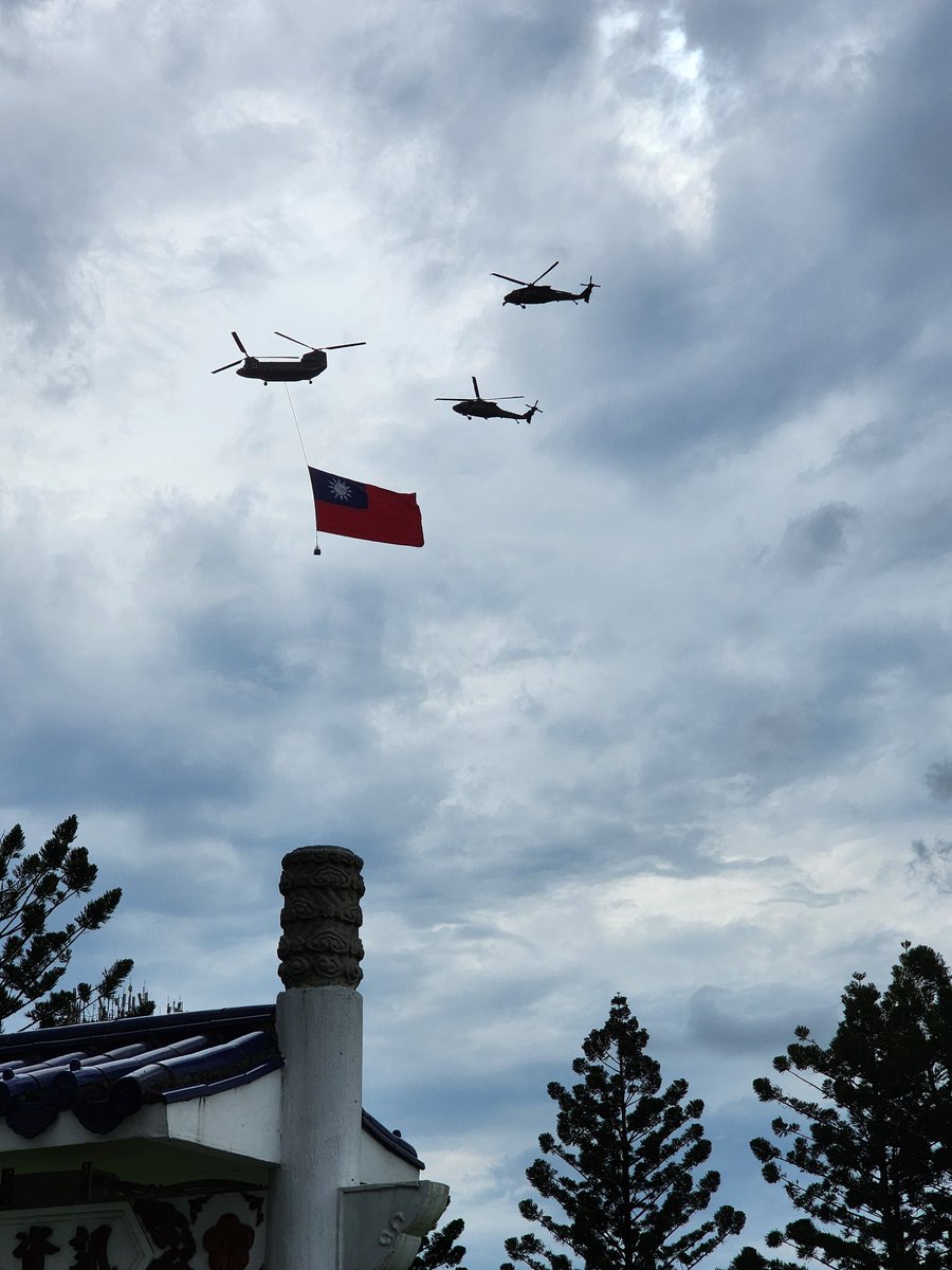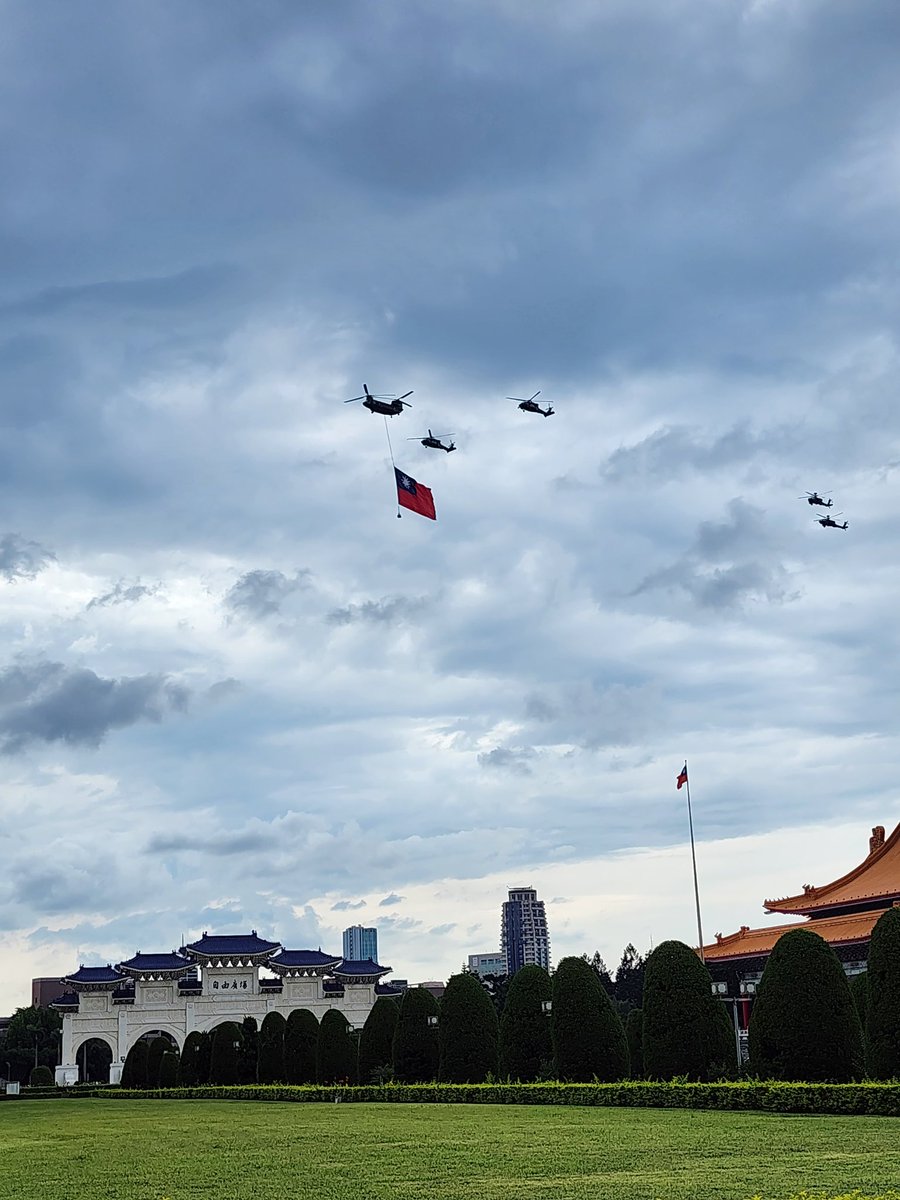 今(19日)下午在中正紀念堂散步,及時抓拍到了即將參加520第16屆台灣總統、副總統就職典禮空中表演的台灣空軍直升機群。台灣空軍威武,有能力保衛台灣領空,打擊中共任何侵台行動。 https://t.co/QaRmj7QTz3