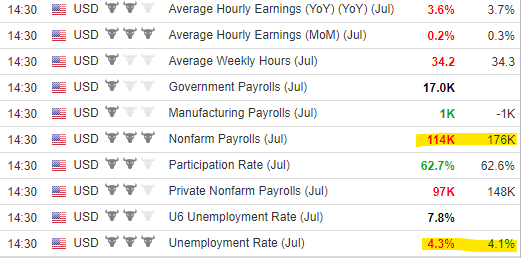星期五(8月2日)公佈的美國非農就業報告顯示,美國7月非農新增就業11.4萬人,大幅不及預期,失業率升至4.3%,預期為4.1%,薪資年率下降至3.6%,為2021年5月以來最低水平,預期為3.7%。同時更多經濟數據顯示美國經濟正在快速放緩,經濟衰退正在到來。美聯儲在7月沒有進采取降息行動可能爲時已晚,届時可能面臨不得大幅降息來挽救經濟衰退。華爾街開始押注美聯儲將在今年下半年進行三次降息的可能性,9月和11月將大概率分別降息50個基點,12月再降25個幾點。今晚美股大跌,美債大漲,很明顯資金已開始從美國股市流向債市。