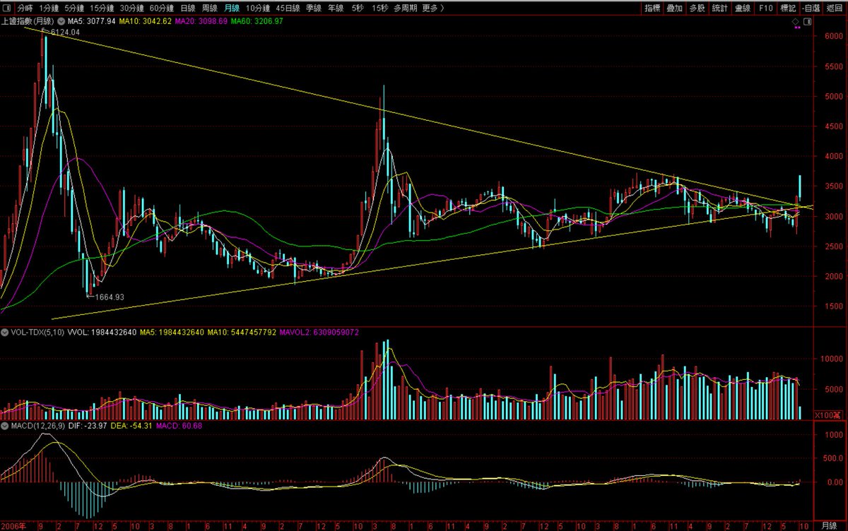 就上證指數而言,此波反彈雖然爆量突破了月K線形成的巨大三角形的上緣壓力綫,但如果不能站穩,則應被視爲假突破,幷有可能轉而向下破位,跌破三角形下緣的支撑線約3000點,並在今後幾個月再回到2600點,甚至更低。
