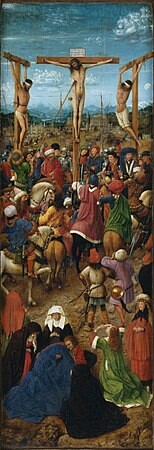 Crucifixion and Last Judgement diptych, left panel,