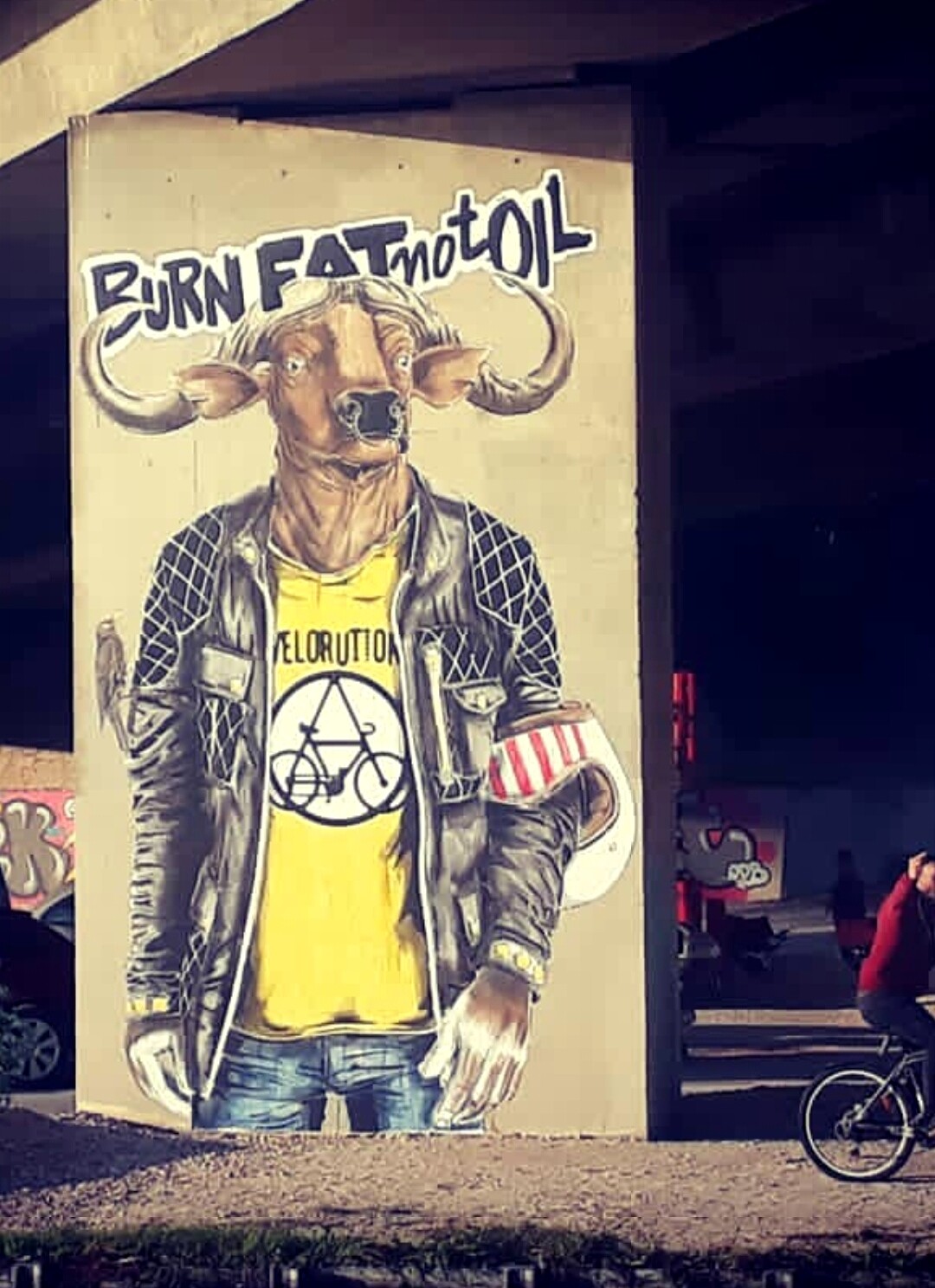 🚲 Artist: #StephaneMoscato / #STF in City: #Dijon France 🇨🇵 - Title: "Burn fat not oil" ("Verbrennt Fett, nicht Öl! ") - #Streetart #Art #Mastoart #Mural #Bicycle #Velorution #mdRzA #Rad #MondayMotivation 🚴💨