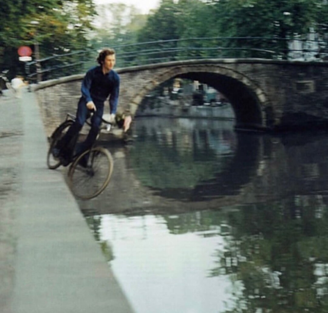 📷 by Artist: #BasJanAder in Loc.: #Amsterdam Netherlands 🇨🇵 1970 - Title: "Fall 2" - #Streetart #Art #Mastoart #Bicycle #Radfahren