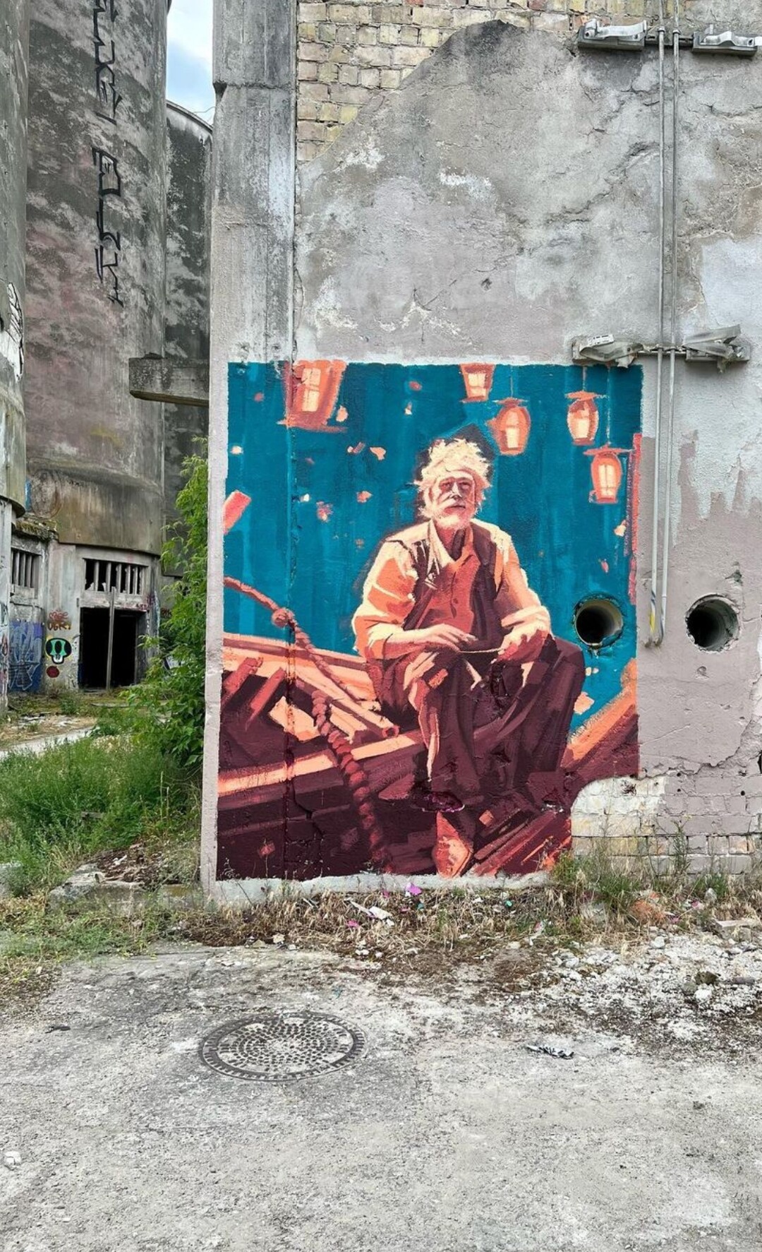 Artist: #ONUR / #ONURpainting - in City: ๐คซ somewhere in #Berlin Germany ๐ฉ๐ช - Title: untitled - #Streetart #Art #Mastoart #Mural #Abadonned #Fisherman