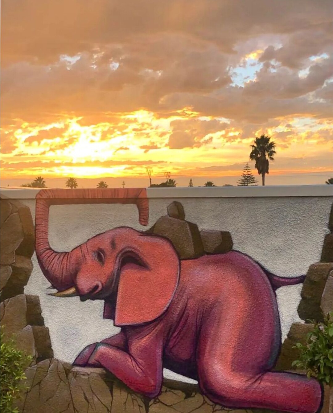 🐘Artist: #FALKO1 / #FALKO1graffiti in - City: #Capetown South Africa 🇿🇦 - Title : "Break of Dawn" 🐘 (Sonnenaufgang) - (📷 by Deone Valentine) - #Streetart #Mastoart #Art #Kapstadt #Mural #Elephant