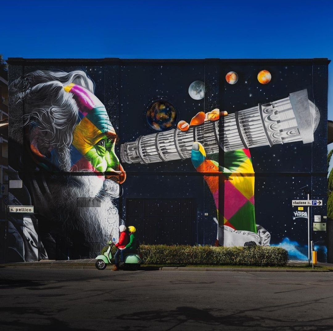 โจ Artist: #KOBRA / #EduardoKobra in City: #Pisa Centre Maccarrone, Via Silvio Pellico, Italy ๐ฎ๐น 2023 - Title: "Tribute to Galileo Galilei" - #Streetart #Art #Mastoart #Mural #Artwork #GalileoGalilei #FestivalDellaStrada #GuteNacht #Traum #Dream ๐